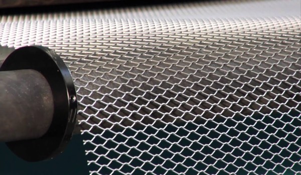 Flattened mesh made by slitting and stretching a metal sheet.