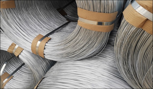 Raw steel wire in coils used for drawing and fabrication.